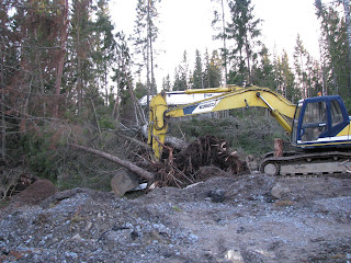 Tammikuussa tehtiin kaupat vanhasta talosta. Muutettiin aso-asuntoon, 4h+s rivariin. Oli kyllä ahdasta meidän perheellä ja lemmikeillä. Kyllä sopu sijaa silti antoi ;) Helmi-maaliskuussa kaadettiin tontilta puita ja raivattiin talon paikkaa. Mies hoiti maatyöt ja tontilla kaivurikuski teki muutaman viikon hommia huhtikuussa.