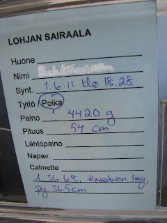 Odoteltiin poikaa syntyväksi toukokuun loppuun. Kerkesin näkemään talon toimituksenkin, vaikkakin pelkäsin juuri silloin olevani sairaalassa. Yliajalle mentiin 3 päivää. Onneksi neuvolassa oli tarkka lääkäri joka pisti päivystyslähetteellä eteenpäin uuteen synnytystapa arvioon. Onneksi vastassa oli sairaalan synnytysosaston ylilääkäri joka teki päätöksen sektioon. Ei yleensä helpolla tee tällaista päätöstä, mutta kuulemma meidän tapauksessa se päätös tuli heti, eikä muuta vaihtoehtoa edes ajateltu. Pari viikkoa aiemmin minut "naurettiin ulos" , kun olin synnytystapa arviossa vauvan mahdollisen suuren koon vuoksi. Itse olin sitä mieltä että poika on iso. lantiomitat oli kohtalaiset, yksi mitta varsin ahdas. Luojan kiitos sain sektion, olisi voinut käydä huonosti tai varmasti olisi käynyt. Loppujen lopuksi kokemus sektiosta on ollut positiivinen, vaikka alkuun sitä todella pelkäsin. päätös tuli 2 tuntia ennen leikkausta, sen aikaa kerkesin itkeä päätöstä :)