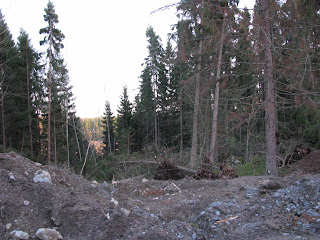 Tässäpä kuvia myrskypäivänä. Pulkatkin oli meidän talon edessä ja nyt ovat tuossa metsässä.. Koiratarhan paikalta ei tarvitse pahemmin puita kaataa, kun luonto kaatoi ne jo. siivo on aikamoinen, kuin pyörremyrsky olisi käynyt. Miehellä on sitten puuhaa loppulomaksi, onneksi on yhtä pitkät lomat aina koululaisten kanssa samaan aikaan :)