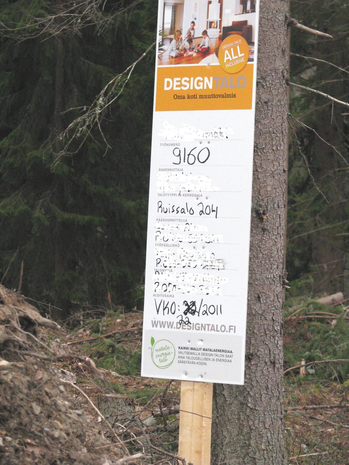 Huhtikuussa, kun tontille ilmestyi kyltti, niin sen näkeminen jotenkin teki kaikesta todellisempaa. Meidän talo todella nousee tänne!